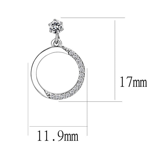 MADA177 - High polished (no plating) Stainless Steel Earrings with AAA Grade CZ in Clear