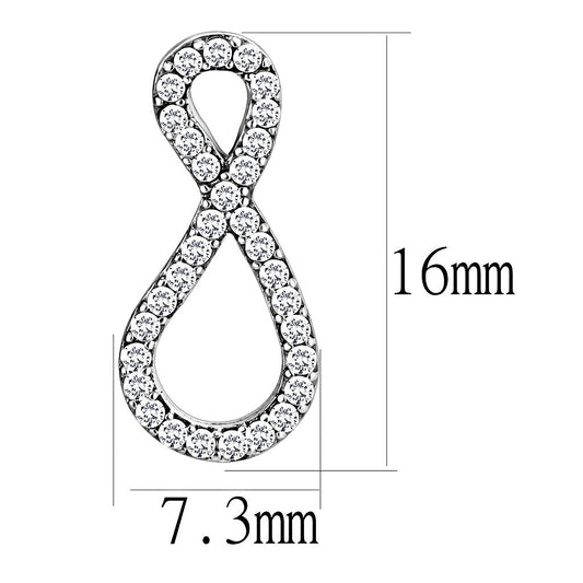 MADA181 - High polished (no plating) Stainless Steel Earrings with AAA Grade CZ in Clear