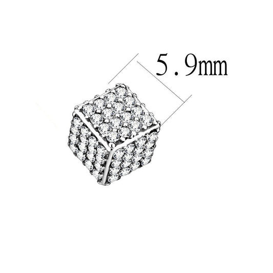 MADA226 - High polished (no plating) Stainless Steel Earrings with AAA Grade CZ in Clear