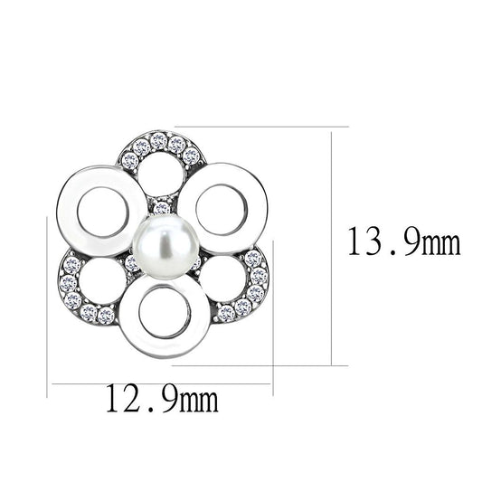 MADA214 - High polished (no plating) Stainless Steel Earrings with Synthetic Pearl in White