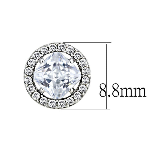 MADA294 - High polished (no plating) Stainless Steel Earrings with AAA Grade CZ in Clear