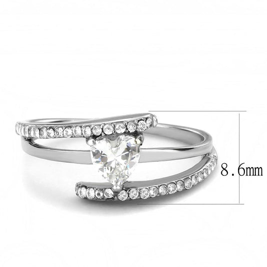 MADA336 - No Plating Stainless Steel Ring with AAA Grade CZ in Clear