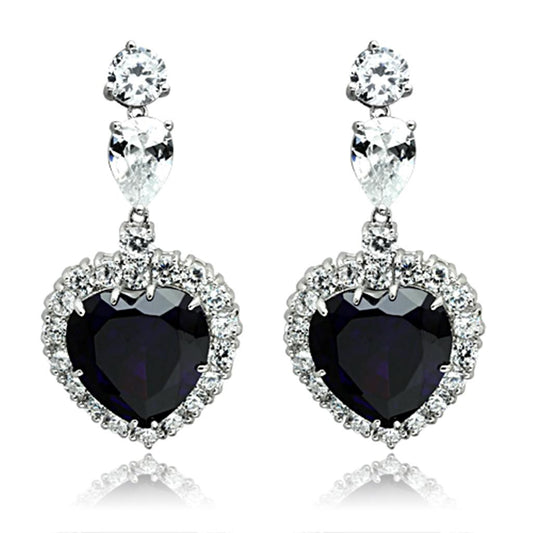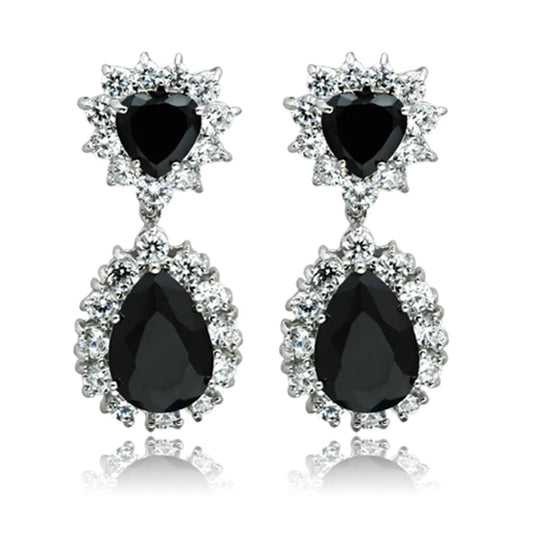 MALO2330 - Rhodium Brass Jewelry Sets with AAA Grade CZ in Jet