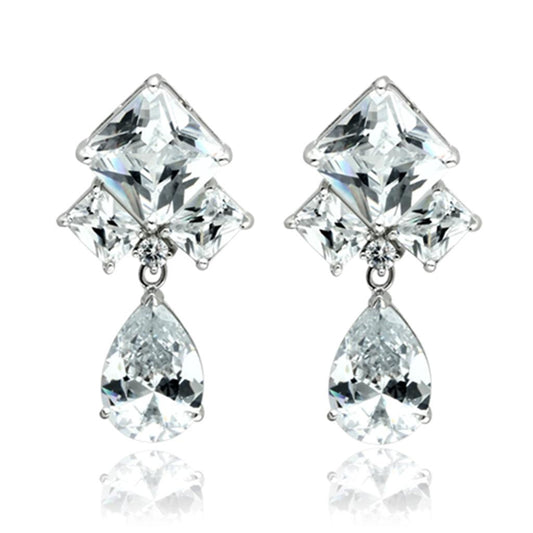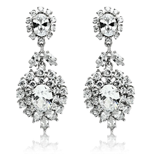 MALO2353 - Rhodium Brass Jewelry Sets with AAA Grade CZ in Clear