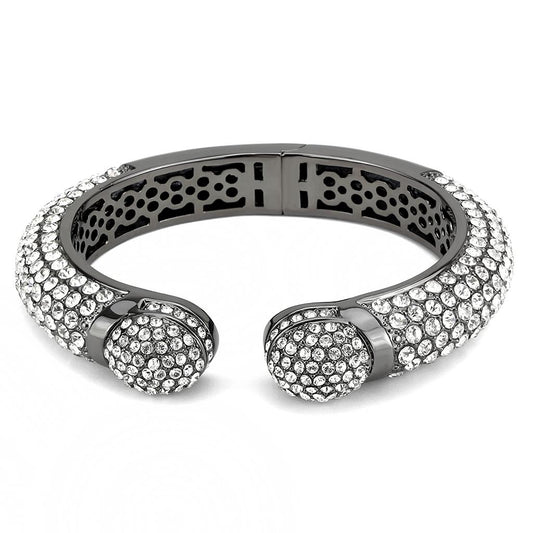 MALO4318 - Ruthenium Brass Bangle with Top Grade Crystal in Clear