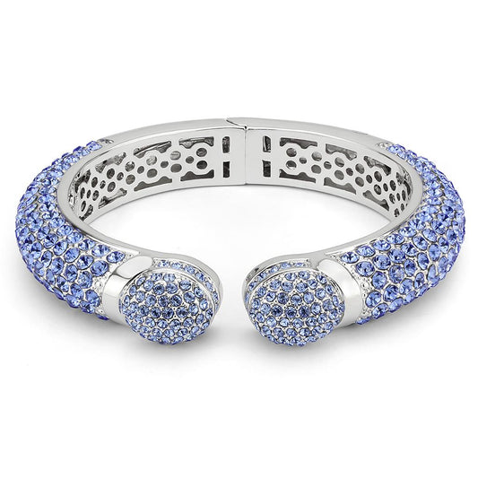 MALO4315 - Rhodium Brass Bangle with Top Grade Crystal in Light Sapphire