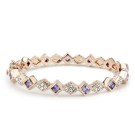 MALO4343 - Rose Gold Brass Bangle with AAA Grade CZ in Amethyst