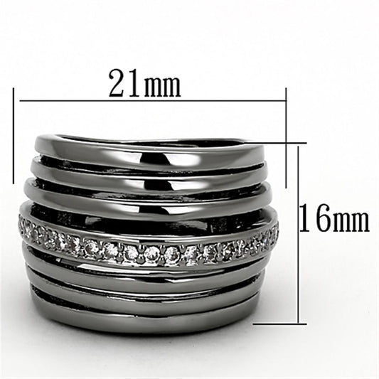 MALOA893 Ruthenium Brass Ring with AAA Grade CZ in Clear