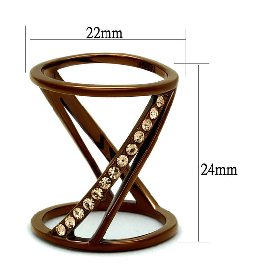 MATK2828 - IP Coffee light Stainless Steel Ring with Top Grade Crystal in Light Peach