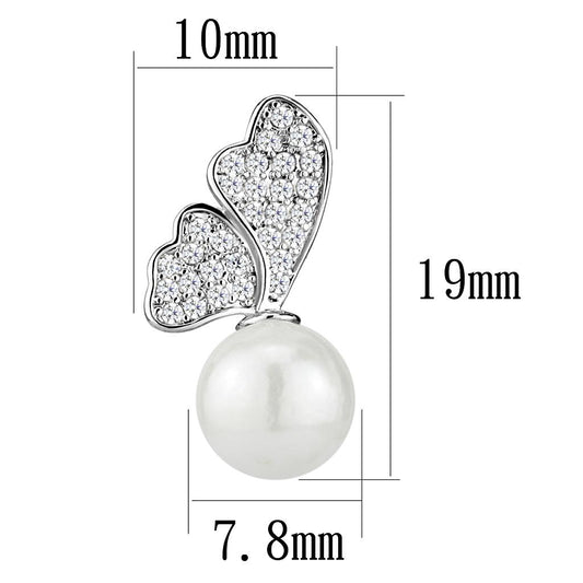 MA3W1295 - Rhodium Brass Earrings with Synthetic Pearl in White