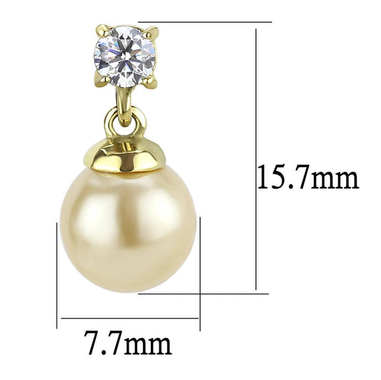 MATK3480 - IP Gold(Ion Plating) Stainless Steel Earrings with Synthetic Pearl in Champagne