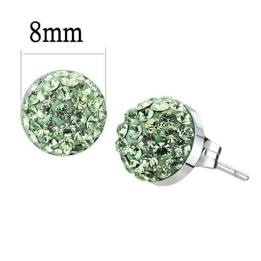 MATK3548 - High polished (no plating) Stainless Steel Earrings with Top Grade Crystal in Peridot