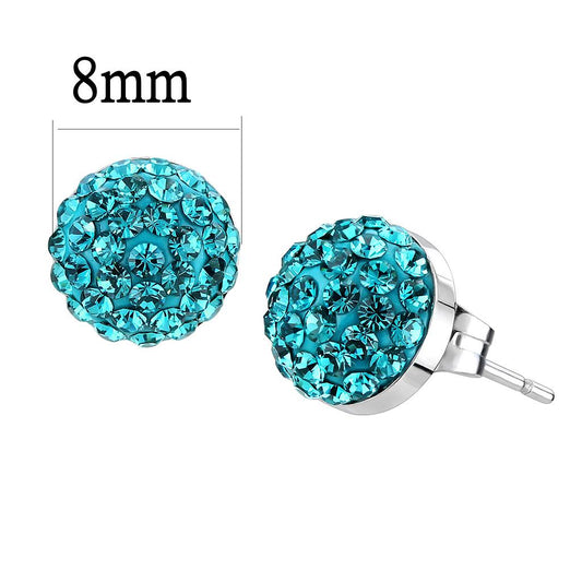 MATK3546 - High polished (no plating) Stainless Steel Earrings with Top Grade Crystal in Sea Blue
