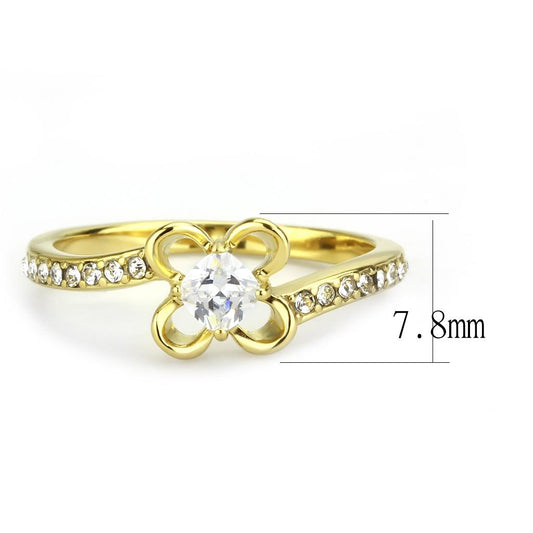 MATK3709 - IP Gold(Ion Plating) Stainless Steel Ring with AAA Grade CZ in Clear