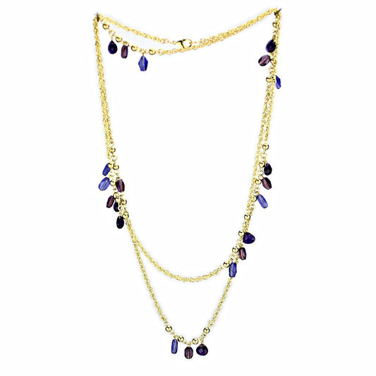 MA3W1538 - Gold Brass Necklace with Semi-Precious Amethyst Crystal in Amethyst