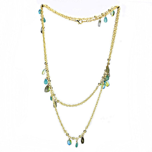 MA3W1537 - Gold Brass Necklace with Synthetic Jade in Emerald