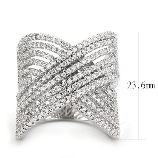 MA3W1547 - Rhodium Brass Ring with AAA Grade CZ in Clear