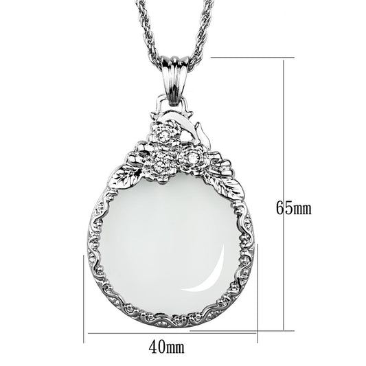MA3W911 - Rhodium Brass Magnifier pendant with Synthetic Synthetic Glass in Clear