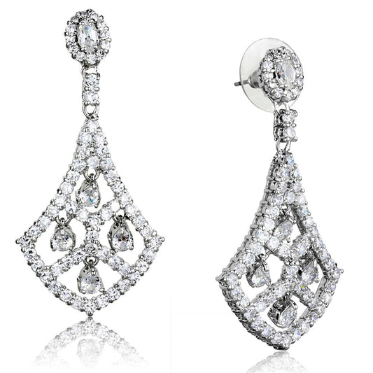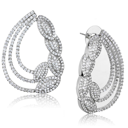 MA3W903 - Rhodium Brass Earrings with AAA Grade CZ in Clear