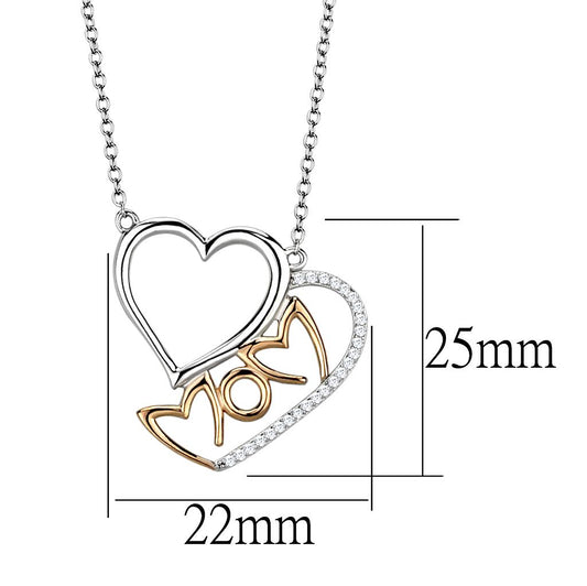 MATS570 - Rose Gold + Rhodium 925 Sterling Silver Necklace with AAA Grade CZ in Clear