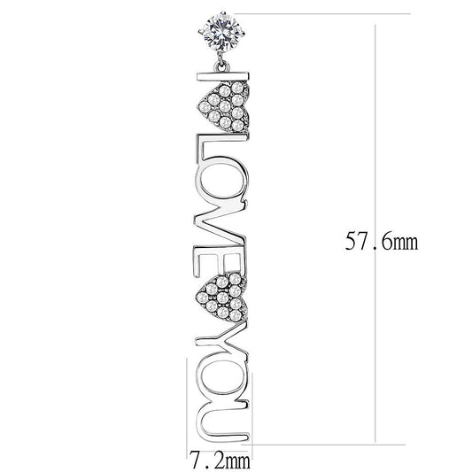 MATK3665 - High polished (no plating) Stainless Steel Earrings with AAA Grade CZ in Clear