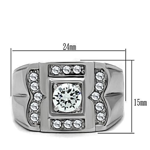 MATK315 - High polished (no plating) Stainless Steel Ring with AAA Grade CZ in Clear