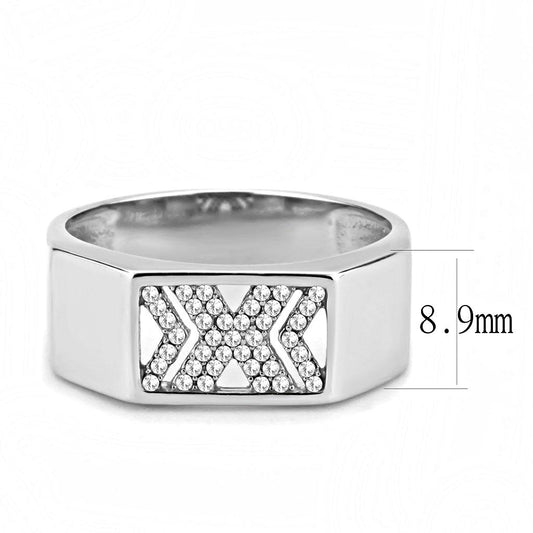 MADA253 - High polished (no plating) Stainless Steel Ring with AAA Grade CZ in Clear