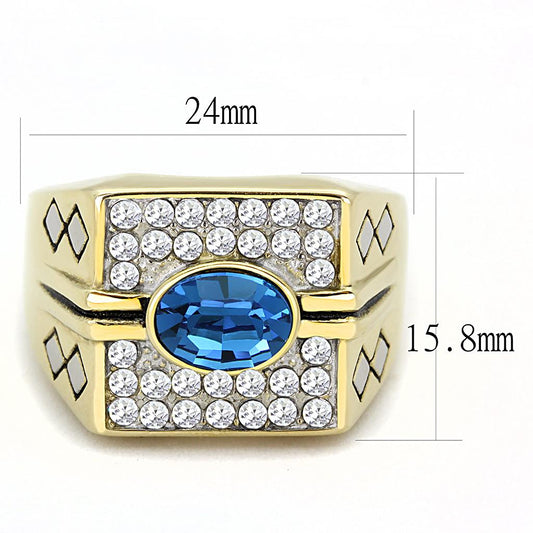 MATK730 - IP Gold(Ion Plating) Stainless Steel Ring with Synthetic Synthetic Glass in Light Sapphire