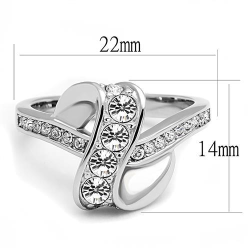 MATK709 - High polished (no plating) Stainless Steel Ring with Top Grade Crystal in Clear