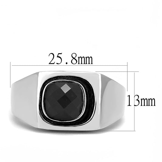 MATK3283 - High polished (no plating) Stainless Steel Ring with Synthetic Synthetic Glass in Jet