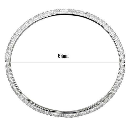 MATS328 - Rhodium 925 Sterling Silver Bangle with AAA Grade CZ in Clear