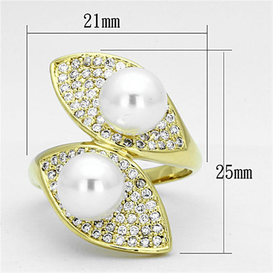 MA3W522 - Gold Brass Ring with Synthetic Pearl in White