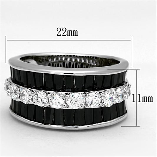 MA3W513 - Rhodium Brass Ring with AAA Grade CZ in Black Diamond