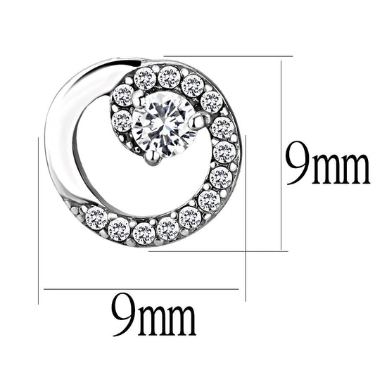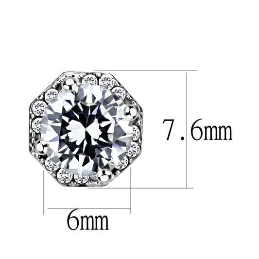 MADA226 - High polished (no plating) Stainless Steel Earrings with AAA Grade CZ in Clear