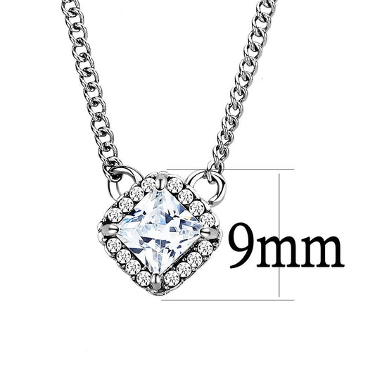 MADA230 - High polished (no plating) Stainless Steel Necklace with AAA Grade CZ in Clear