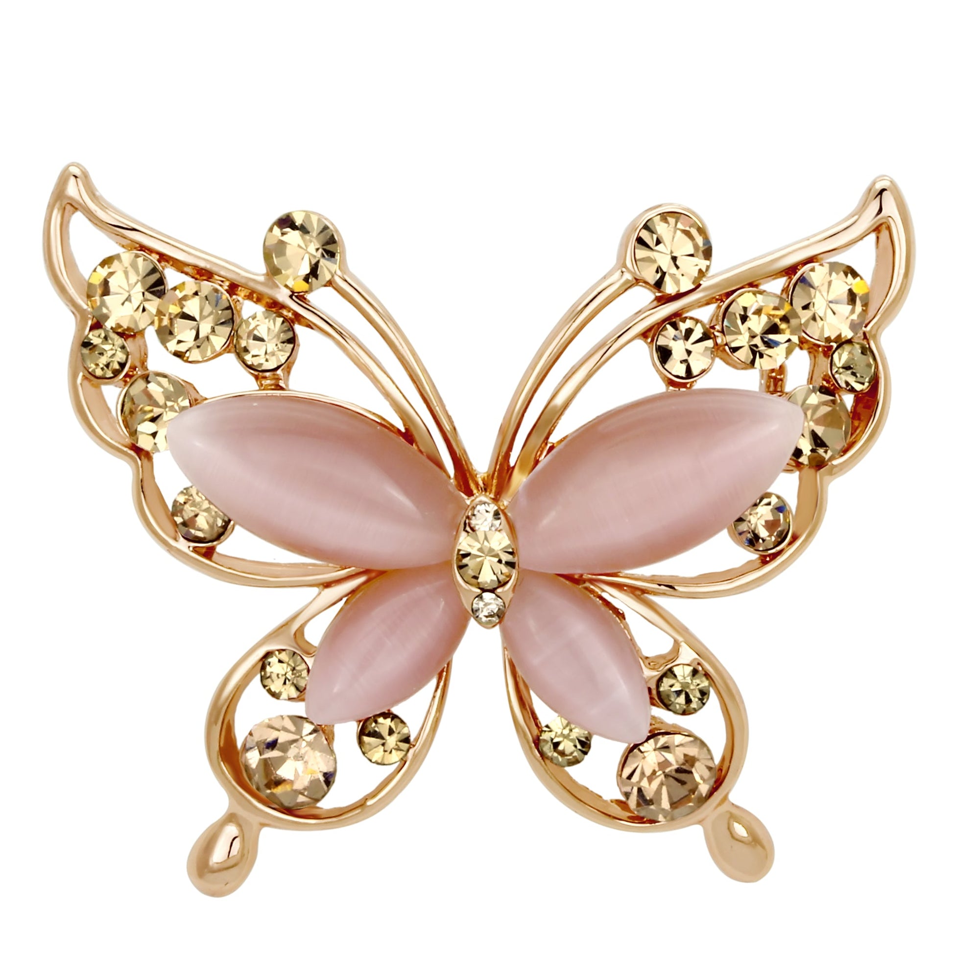 MALO2806 - Flash Rose Gold White Metal Brooches with Synthetic Cat Eye in Light Rose