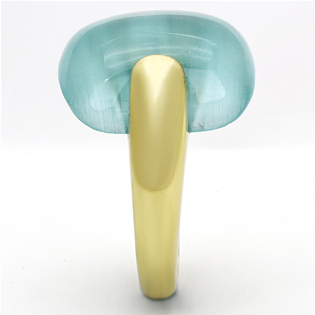 MATK1237 - IP Gold(Ion Plating) Stainless Steel Ring with Synthetic Cat Eye in Sea Blue