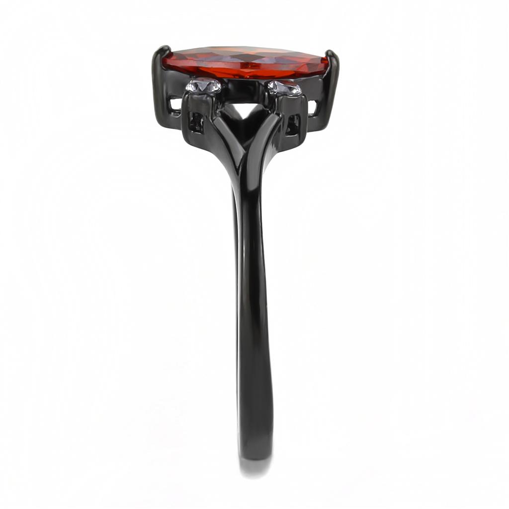 MATK3445 - IP Black(Ion Plating) Stainless Steel Ring with AAA Grade CZ in Garnet