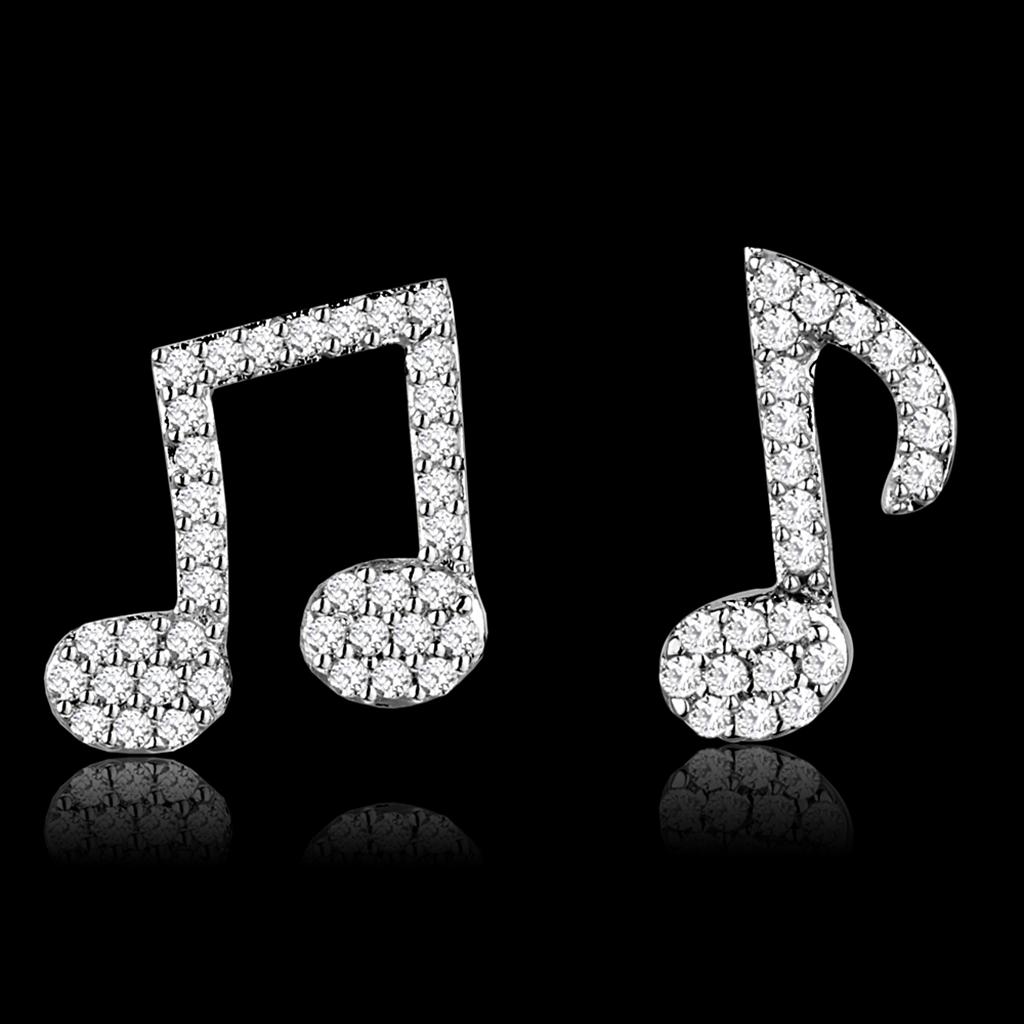 MATS285 - Rhodium 925 Sterling Silver Earrings with AAA Grade CZ in Clear